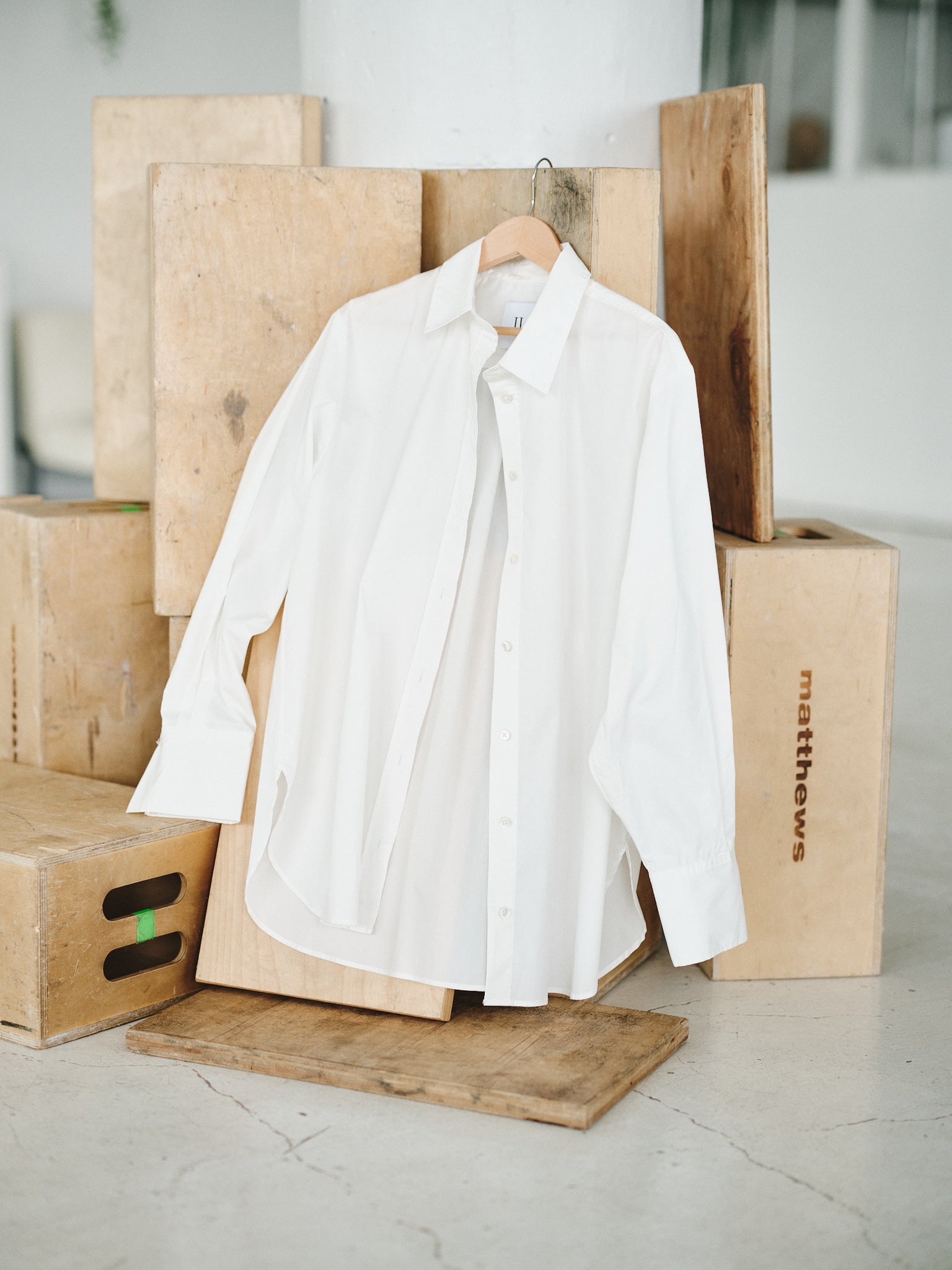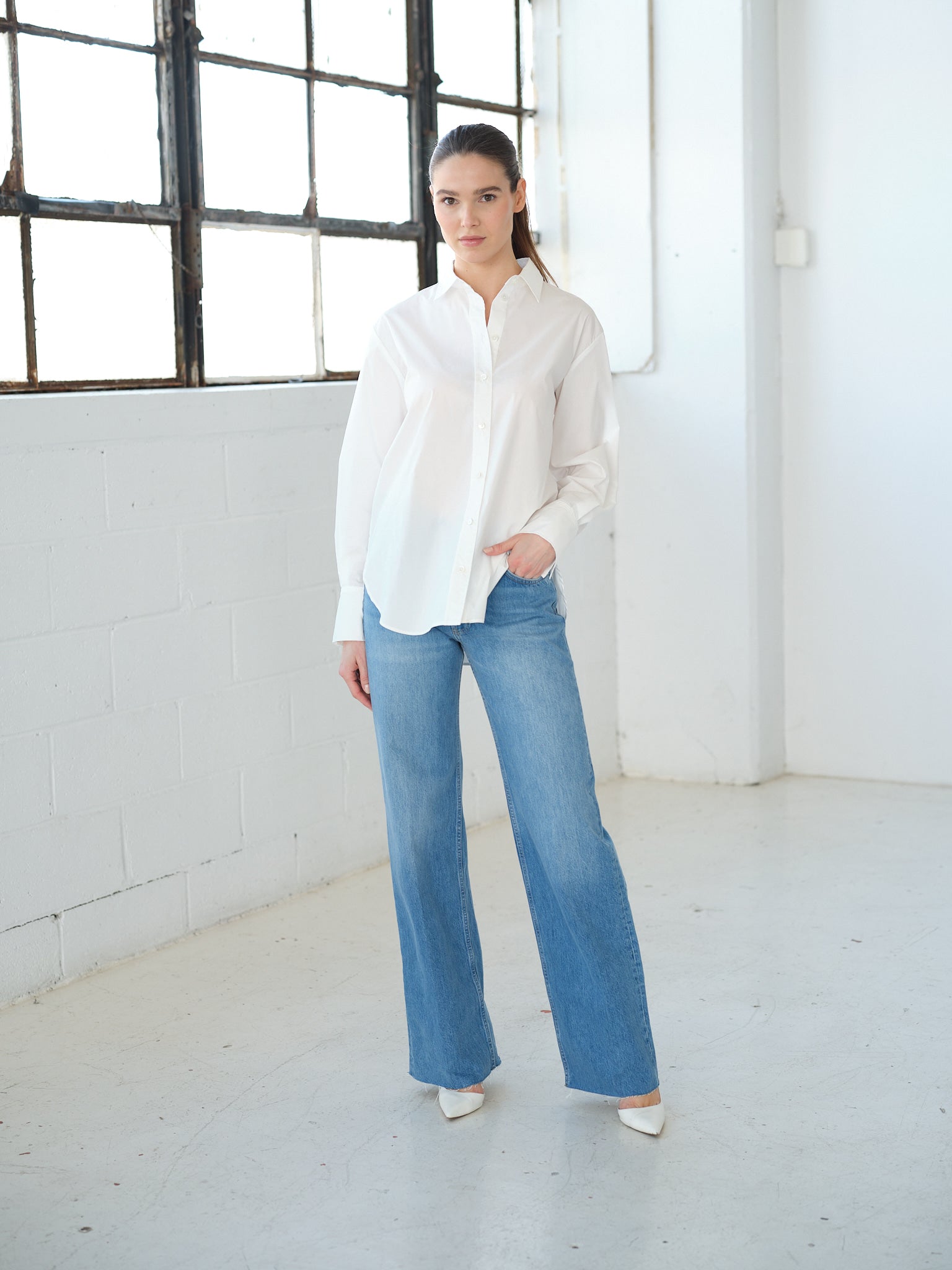 An essential for every wardrobe- This menswear-inspired crisp Button-Up has an oversized, relaxed fit featuring a French inspired cuff. This is the base layer for so many looks and pairs back perfectly to your favorite denim no matter the season.